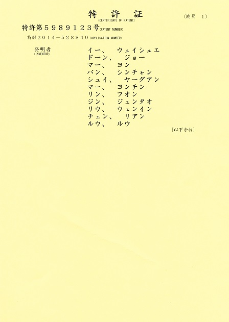 日本專利(授權(quán))號(hào):特許第5989123號(hào)