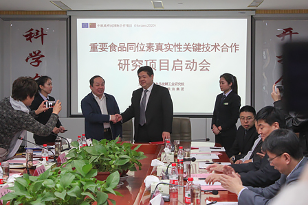 “重要食品同位素真實(shí)性關(guān)鍵技術(shù)合作研究”項(xiàng)目是由中國(guó)食品發(fā)酵工業(yè)研究院牽頭,萊陽(yáng)魯花濃香花生油有限公司、山東金勝糧油集團(tuán)有限公司、安徽古井貢酒股份有限公司、濟(jì)南趵突泉釀酒有限責(zé)任公司、瀘州老窖集團(tuán)有限責(zé)任公司、中國(guó)酒業(yè)協(xié)會(huì)等單位共同參與的中國(guó)-歐洲政府間國(guó)際合作項(xiàng)目。項(xiàng)目起止時(shí)間為2016年12月至2019年11月,項(xiàng)目合作外方是意大利博洛尼亞大學(xué)為首的地平線2020計(jì)劃項(xiàng)目。