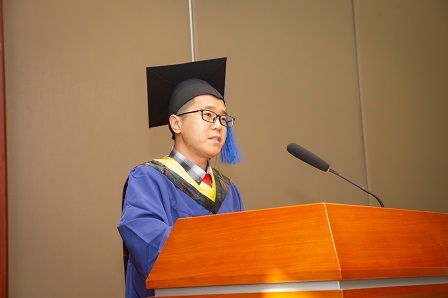 蔡木易院長(zhǎng)作了重要講話。他說(shuō),首先代表研究院向圓滿完成學(xué)業(yè)的2018屆研究生表示祝賀,感謝全體導(dǎo)師為研究生的成長(zhǎng)、成才所付出的辛勤工作。他指出,36年來(lái),研究院共培養(yǎng)研究生近200人,大多數(shù)人已成為行業(yè)精英,為食品行業(yè)技術(shù)進(jìn)步和發(fā)展壯大作出了應(yīng)有的貢獻(xiàn)。蔡院長(zhǎng)在講話中對(duì)同學(xué)們提出了三點(diǎn)希望:一是人生出彩靠奮斗。希望同學(xué)們努力把個(gè)人發(fā)展融入國(guó)家和人民的事業(yè)中,把個(gè)人抱負(fù)融入中華民族偉大復(fù)興的實(shí)踐中,在為行業(yè)發(fā)展、為國(guó)家富強(qiáng)、為民族復(fù)興的偉大事業(yè)中書(shū)寫(xiě)出彩人生??傆幸惶欤芯吭簳?huì)因有你們而感到自豪。二是百善孝為先。希望畢業(yè)生們?cè)趨⒓庸ぷ骱?,能用第一個(gè)月的工資收入孝敬自己的父母、關(guān)愛(ài)自己的家人,學(xué)會(huì)報(bào)答父母的養(yǎng)育之恩。三是常回家看看。三年前,同學(xué)們躊躇滿志、帶著忐忑和喜悅來(lái)到研究院,如今你們學(xué)業(yè)期滿,即將步入各自人生未來(lái),希望大家有機(jī)會(huì)常回研究院看看,研究院永遠(yuǎn)都是你們的家,永遠(yuǎn)是你們堅(jiān)強(qiáng)的后盾。