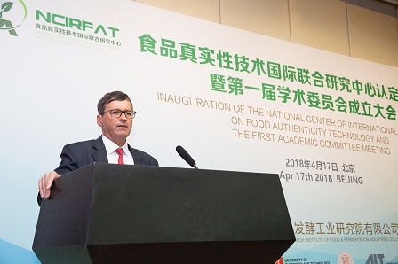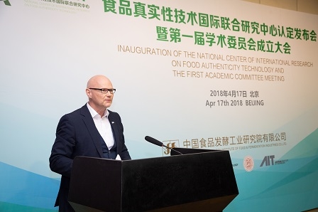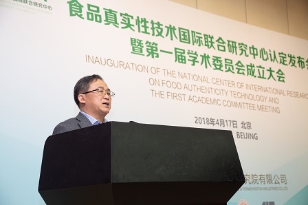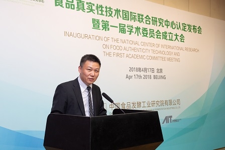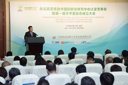 2018年4月17日,“食品真實性技術(shù)國際聯(lián)合研究中心認定發(fā)布會暨第一屆學(xué)術(shù)委員會成立大會”在中國食品發(fā)酵工業(yè)研究院召開??萍疾恐袊r(nóng)村技術(shù)開發(fā)中心賈敬敦主任、中國工程院及國家食品安全風(fēng)險評估中心陳君石院士、中國科學(xué)技術(shù)交流中心董克勤處長、歐盟駐華代表團公使銜參贊、科學(xué)技術(shù)與環(huán)境部主任Laurent Bochereau、國家工業(yè)和信息化部消費品工業(yè)司鄧小丁處長、國家質(zhì)檢總局科技司裴曉穎巡視員,國家食品藥品監(jiān)督管理總局食品安全監(jiān)管三司高晗處長、國家標(biāo)準(zhǔn)化管理委員會農(nóng)業(yè)食品標(biāo)準(zhǔn)部于茜處長、中國食品科學(xué)技術(shù)學(xué)會邵薇副理事長、中國飲料協(xié)會劉元理事長助理、中國食品發(fā)酵工業(yè)研究院蔡木易院長、德國聯(lián)邦風(fēng)險評估研究所、德國農(nóng)業(yè)研究中心、捷克布拉格化工大學(xué)等來自歐盟和國內(nèi)食品真實性技術(shù)相關(guān)專家、學(xué)者等100余人參加了本次會議。