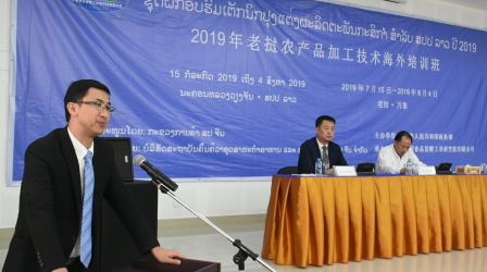 為積極落實(shí)國(guó)家“一帶一路”倡議,用實(shí)際行動(dòng)踐行習(xí)近平總書(shū)記提出的“親、誠(chéng)、惠、容”的周邊外交理念,由中華人民共和國(guó)商務(wù)部主辦、我院承辦的“2019年援外人力資源開(kāi)發(fā)合作項(xiàng)目”系列培訓(xùn)班于萬(wàn)象首秀,“2019年老撾農(nóng)產(chǎn)品加工技術(shù)海外培訓(xùn)班” 于7月15日在老撾建國(guó)陣線(xiàn)培訓(xùn)中心順利開(kāi)班,培訓(xùn)學(xué)員近百名。