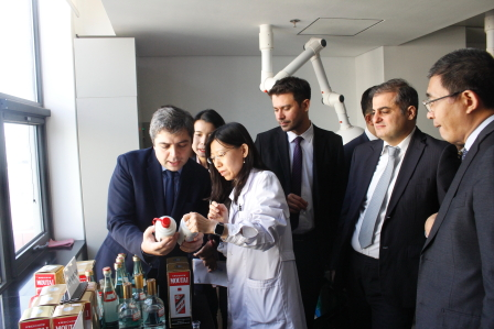 阿爾赤·卡嵐第亞參觀了食品院品院所屬國家食品質量監(jiān)督檢驗中心、北京市重點實驗室、科普教育基地等,實地了解項目研發(fā)、技術創(chuàng)新、成果轉化、儀器裝備等現(xiàn)狀,并與現(xiàn)場科研人員進行交流,詳細了解食品院科研創(chuàng)新發(fā)展情況。