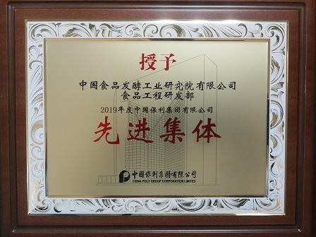 12月27日,食品院所屬食品工程研究發(fā)展部獲得保利集團“先進集體”榮譽稱號