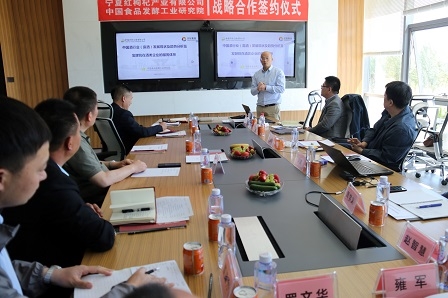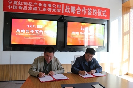 5月11日,食品院總經(jīng)理董建輝一行4人到訪寧夏紅枸杞產(chǎn)業(yè)有限公司,雙方簽署戰(zhàn)略合作協(xié)議。寧夏鋼鐵集團(tuán)所屬寧夏紅枸杞產(chǎn)業(yè)有限公司董事長曹廣江、總經(jīng)理王黎明一行接待。
