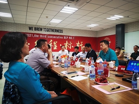 2021年7月5日,中國食品發(fā)酵工業(yè)研究院總經(jīng)理董建輝帶領(lǐng)釀酒工程研發(fā)部、食品工程研發(fā)部與標(biāo)準(zhǔn)信息研發(fā)部相關(guān)人員赴百威亞洲最大的單體啤酒工廠——莆田工廠,與百威英博亞太區(qū)供應(yīng)鏈與物流副總裁程衍俊一行,就深化雙方合作舉行會(huì)談。雙方會(huì)談旨在通過合作,更好的推動(dòng)百威與中國啤酒行業(yè)的發(fā)展。