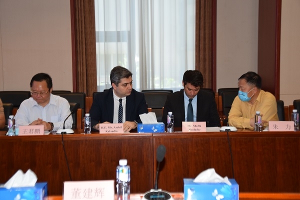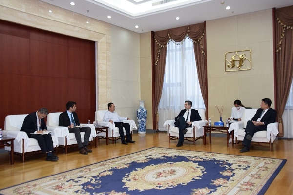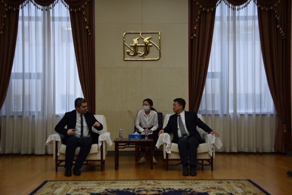 王君鵬向大使先生介紹了首旅集團的發(fā)展歷史以及現(xiàn)有業(yè)務(wù)、規(guī)模等。他表示,首旅集團在酒店行業(yè)、餐飲服務(wù)業(yè)、汽車業(yè)、航空業(yè)、旅游業(yè)等均有涉獵,且在市場具有一定規(guī)模及影響力。他指出,首旅集團旗下合資的“俄優(yōu)品”是主營俄語區(qū)和上合組織國家產(chǎn)品的跨境O2O電商平臺,北京展覽館是其線下展示平臺并且展示有多種格魯吉亞葡萄酒。他誠摯地邀請Archil Kalandia大使前去參觀、交流。