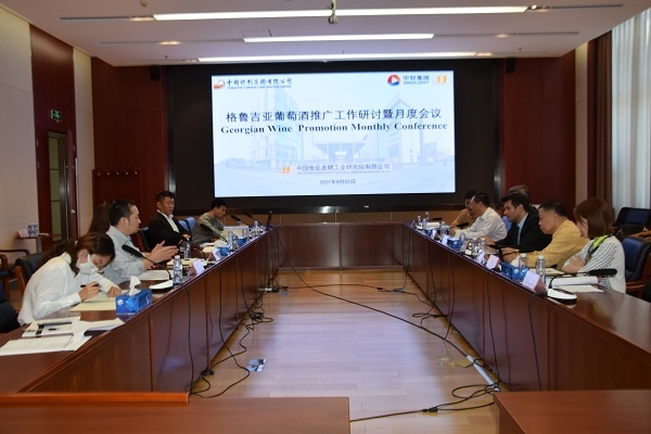 2021年8月2日,格魯吉亞駐華特命全權(quán)大使Archil Kalandia閣下、參贊Sholta Abuladze先生,中國首都旅游集團集采中心黨委王君鵬書記,北京北展科技發(fā)展(俄優(yōu)品)有限公司戰(zhàn)明總經(jīng)理,北京國際酒類交易所朱力總裁、盛開體育有限公司副總裁/體育旅游CEO鄭來、烏魯木齊歐亞匯貿(mào)易有限公司喬文東董事長等一行到訪中國食品發(fā)酵工業(yè)研究院有限公司,探討進一步拓展格魯吉亞葡萄酒在中國市場推廣,食品院董建輝總經(jīng)理、魯軍副總經(jīng)理、羅燕琴總經(jīng)理助理和格魯吉亞葡萄酒(中國)推廣中心黃宇彤主任等接待代表團一行。