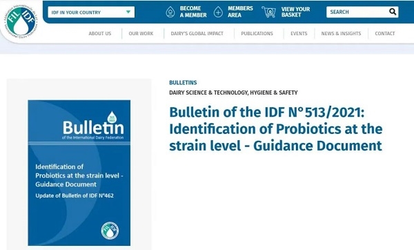 2021年12月15日,國際乳品聯(lián)合會(IDF)正式發(fā)布《IDF公報No.513/2021 益生菌菌株水平鑒定指導(dǎo)文件》(Bulletin of the IDF No. 513/2021: Identification of Probiotics at the strain level - Guidance Document)。這是我國首次主導(dǎo)完成的國際IDF指導(dǎo)文件,由中國食品院副院長、IDF乳微生物分析方法委員會(SCAMDM)主席姚粟教授團隊牽頭修訂,項目組成員包括來自中國、法國、波蘭、丹麥、新西蘭、瑞士、比利時、德國、日本等成員國專家,同時得到來自IDF中國國家委員會、IDF各技術(shù)委員會和各國家委員會的積極參與,引起國內(nèi)外學(xué)術(shù)界和產(chǎn)業(yè)界的高度關(guān)注。