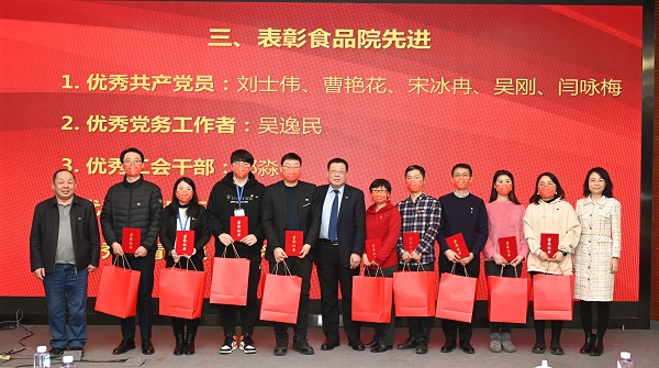 1月18日,食品院召開2022年度工作會暨總結(jié)表彰會,對2021年度先進(jìn)集體、優(yōu)秀黨員、優(yōu)秀黨務(wù)工作者、優(yōu)秀工會干部、優(yōu)秀團(tuán)干部、優(yōu)秀團(tuán)員、優(yōu)秀員工和優(yōu)秀研究生進(jìn)行了表彰。