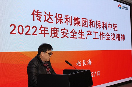 總經(jīng)理肖丹在總結(jié)講話中對各部門在過去一年安全生產(chǎn)工作所取得的階段性成績給予了肯定,就如何深入領(lǐng)會并貫徹落實保利集團和保利中輕2022年安全生產(chǎn)工作會議精神、抓好2022年度各項安全生產(chǎn)工作提出了四點要求: