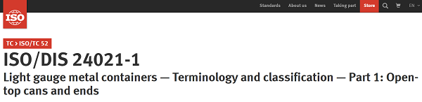 ISO 24021-1“薄壁金屬容器-術(shù)語和分類-第1部分:開頂罐和蓋”由中國食品院、奧瑞金股份有限公司等單位聯(lián)合主導制定,項目于2020年5月成功立項,并于2022年1月以所有投票成員國100%贊成通過DIS投票。