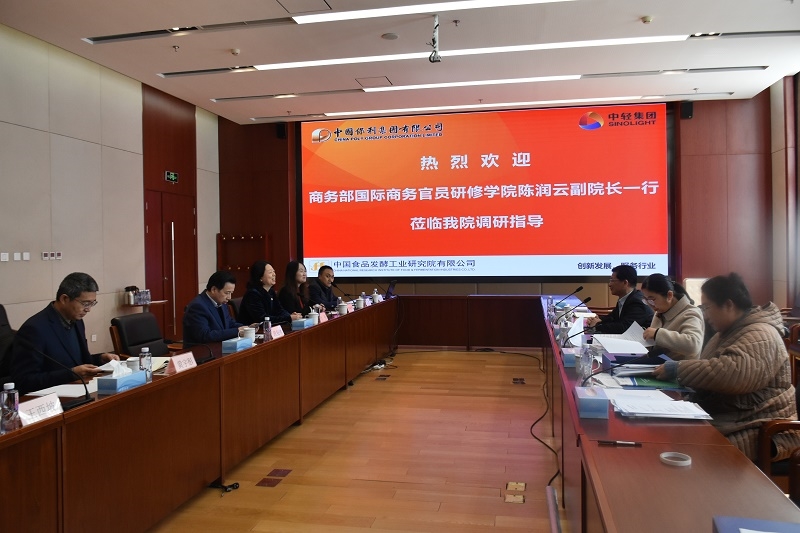 4月1日上午,商務(wù)部國際商務(wù)官員研修學(xué)院陳潤云副院長到訪中國食品發(fā)酵工業(yè)研究院調(diào)研援外培訓(xùn)工作。援外培訓(xùn)聯(lián)絡(luò)辦公室處長杜兆君、培訓(xùn)干事王靖靖、項目管理二處經(jīng)辦程潔隨訪,保利中輕總經(jīng)理助理、中國食品院黨委書記、總經(jīng)理肖丹,副總經(jīng)理段盛林,總經(jīng)理助理羅燕琴、高級顧問黃宇彤及國際合作與貿(mào)易發(fā)展部國際培訓(xùn)中心相關(guān)人員陪同調(diào)研。