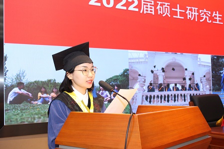 畢業(yè)生張哲同學(xué)代表全體畢業(yè)生向研究院、向辛勤培育學(xué)子的老師表達(dá)了衷心的感謝并致以崇高的敬意,表示在研究院里度過了充實(shí)而難忘的三年,經(jīng)歷了研究院面對新冠疫情持續(xù)推動科技創(chuàng)新和服務(wù)行業(yè)的堅(jiān)守;畢業(yè)后走向社會和工作崗位,全體同學(xué)一定會銘記研究院恩情和恩師的諄諄教誨,開啟嶄新的人生旅程。
