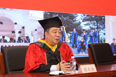 郭新光副總經(jīng)理宣讀了中國食品院關(guān)于授予張宇凌等7位同學(xué)工學(xué)碩士學(xué)位的決定,保利中輕副總經(jīng)理、中國食品院董事長、學(xué)位評定委員會主任蔡木易作畢業(yè)典禮致辭,并為畢業(yè)生頒發(fā)證書和“撥穗”。