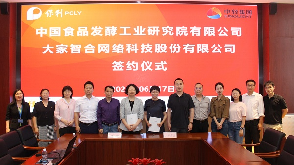 2022年6月17日,保利中輕總經理助理、中國食品發(fā)酵工業(yè)研究院有限公司黨委書記、總經理肖丹會見了大家智合(北京)網絡科技股份有限公司創(chuàng)始人兼CEO陳彥一行,陪同參觀了中國食品院各研究中心并進行了深入的交流座談,雙方就終端產品推廣合作簽署了戰(zhàn)略合作協(xié)議。