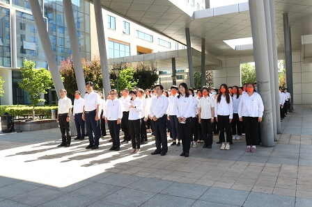 7月15日,中國食品發(fā)酵工業(yè)研究院有限公司聯(lián)合中輕檢驗認(rèn)證有限公司共同舉辦升保利司旗、唱司歌活動,中國食品院和中輕檢黨政班子成員、中層干部、員工代表共計120余人參加活動。