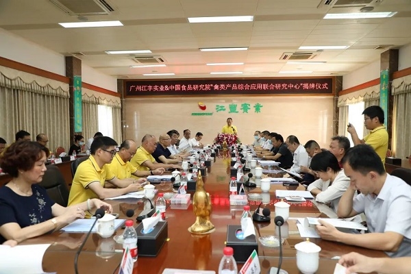 習(xí)近平總書記在中央農(nóng)村工作會議上指出:“要堅持農(nóng)業(yè)科技自立自強(qiáng),加快推進(jìn)農(nóng)業(yè)關(guān)鍵核心技術(shù)攻關(guān)”。此次中國食品發(fā)酵工業(yè)研究院與江豐實(shí)業(yè)共建禽類產(chǎn)品綜合應(yīng)用聯(lián)合研究中心,是保利中輕落實(shí)央企與地方合作、發(fā)揮原創(chuàng)技術(shù)“策源地”與現(xiàn)代產(chǎn)業(yè)鏈“鏈長”引領(lǐng)作用的有效舉措,旨在開展禽類深加工技術(shù)研究,為行業(yè)提供產(chǎn)品深加工示范技術(shù)、產(chǎn)品推廣、評價及檢測服務(wù),以科技賦能嶺南肉禽加工產(chǎn)業(yè)。