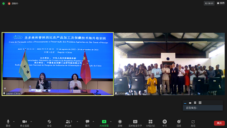 8月31日,由中國(guó)商務(wù)部主辦,中國(guó)食品發(fā)酵工業(yè)研究院有限公司承辦的“圣多美和普林西比農(nóng)產(chǎn)品加工及保藏技術(shù)海外培訓(xùn)班”舉行線上開(kāi)班儀式。