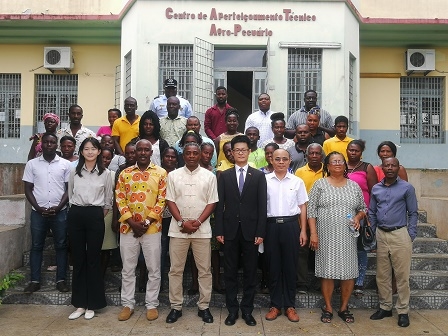 保利中輕總經(jīng)理助理、中國(guó)食品院黨委書(shū)記、總經(jīng)理肖丹女士,圣多美和普林西比民主共和國(guó)(以下簡(jiǎn)稱“圣普”)農(nóng)業(yè)、漁業(yè)和農(nóng)村發(fā)展部代部長(zhǎng)塞爾索·加里多先生、中國(guó)駐圣普大使館臨時(shí)代辦胡濱先生、圣普梅佐希大區(qū)主席德賽塔先生、中國(guó)援圣普農(nóng)牧業(yè)技術(shù)專家組組長(zhǎng)賈金宏先生受邀出席本次開(kāi)班儀式。來(lái)自農(nóng)業(yè)部的47名學(xué)員參加本次開(kāi)班儀式。