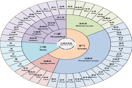 從2010年到2017年,中國食品院花費7年的時間制定中國白酒感官風(fēng)味輪標(biāo)準(zhǔn)。該標(biāo)準(zhǔn)借鑒了國際通用做法,將白酒風(fēng)味術(shù)語庫通過不同的形式表達(dá)出來。每個香型,甚至每個產(chǎn)品都有獨特的表達(dá)形式,涉及的內(nèi)容有香氣、口感等方面,更便于消費者理解。中國白酒感官風(fēng)味輪標(biāo)準(zhǔn)是今后白酒價值表達(dá)的大趨勢,未來每種細(xì)分香型都可能會有更加清晰、通俗的表達(dá)形式。