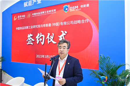 展會(huì)期間,安勝杰、蔡木易出席中國(guó)食品院與帝斯曼(中國(guó))戰(zhàn)略合作簽約儀式,肖丹、郭新光帶隊(duì)赴荷蘭皇家帝斯曼中國(guó)地區(qū)總部和研發(fā)中心進(jìn)行座談交流,并為“營(yíng)養(yǎng)健康原料標(biāo)準(zhǔn)化聯(lián)合研究中心”揭牌。中國(guó)食品院與帝斯曼將結(jié)合雙方的優(yōu)勢(shì),不斷完善發(fā)酵食品原配料標(biāo)準(zhǔn)制定、評(píng)價(jià)、推廣與應(yīng)用體系,推動(dòng)雙方共贏發(fā)展。
