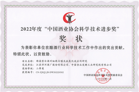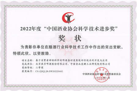 聯(lián)合北京燕京啤酒股份有限公司《基于消費(fèi)者神經(jīng)科學(xué)的啤酒喜好度智能評(píng)價(jià)技術(shù)的開發(fā)與應(yīng)用》、聯(lián)合江蘇洋河酒廠股份有限公司《綿柔型白酒對(duì)細(xì)胞自噬及抗氧化效應(yīng)的研究》項(xiàng)目成果分別榮獲科學(xué)技術(shù)進(jìn)步二等獎(jiǎng)。