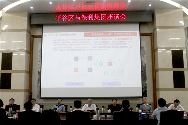 8月1日,保利集團(tuán)總經(jīng)理助理,保利中輕黨委書記、董事長安勝杰一行赴北京市平谷區(qū)調(diào)研,就平谷食品合成生物學(xué)基地建設(shè)等情況座談交流。平谷區(qū)委書記唐海龍,保利中輕黨委副書記、總經(jīng)理王珂靈,保利中輕首席科學(xué)家、科委會(huì)榮譽(yù)主任蔡木易,平谷區(qū)副區(qū)長劉堃;保利中輕總經(jīng)理助理,中國食品發(fā)酵工業(yè)研究院黨委書記、總經(jīng)理肖丹出席會(huì)議。平谷區(qū)委副書記、區(qū)長狄濤主持會(huì)議。