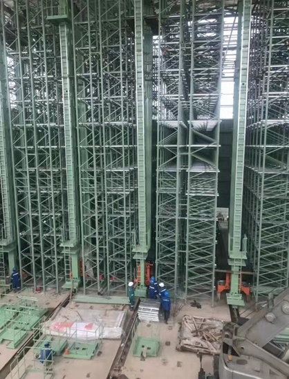 印尼亞太立體庫(kù)項(xiàng)目總貨位數(shù)為3792個(gè),按貨位規(guī)格可存放紙卷2876噸,最大可存儲(chǔ)紙卷規(guī)格為直徑φ1200×幅寬1800mm,最大可儲(chǔ)存紙卷重量1500kg。6臺(tái)堆垛機(jī)負(fù)責(zé)紙卷的出入庫(kù)轉(zhuǎn)運(yùn),入庫(kù)能力110卷/小時(shí),出庫(kù)能力110卷/小時(shí),空載運(yùn)行速度120m/min,負(fù)載運(yùn)行速度100m/min。