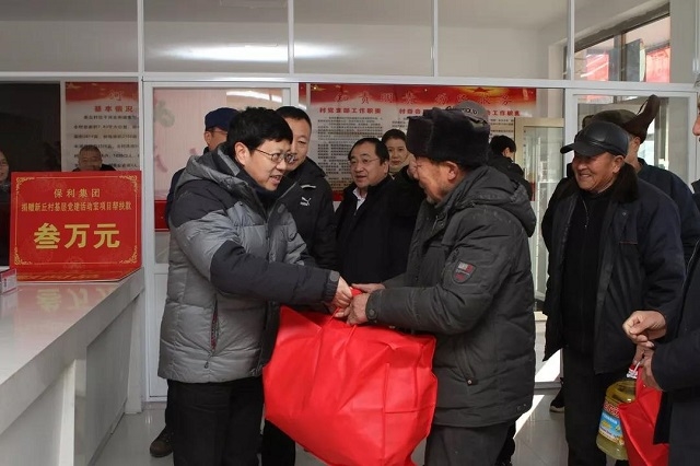 “感謝保利集團(tuán)和中輕集團(tuán)對(duì)我們的關(guān)懷和捐贈(zèng)!”在喀喇沁旗河北街道辦事處進(jìn)行的“愛在喀喇沁 扶貧送溫暖”2020年春節(jié)捐贈(zèng)儀式上,當(dāng)新丘村支部書記王有良、村長(zhǎng)郭瑞東分別從王珂靈、陳曉麗手中接過黨員活動(dòng)室建設(shè)幫扶款、春節(jié)慰問物資的時(shí)候,他們發(fā)自肺腑地表示感謝,并向保利集團(tuán)贈(zèng)送了寫著“深入基層,精準(zhǔn)扶貧,情系百姓,溫暖人心”的錦旗。三萬(wàn)元的黨員活動(dòng)室建設(shè)經(jīng)費(fèi),可以讓村里的黨員能夠擁有一個(gè)更好的學(xué)習(xí)活動(dòng)場(chǎng)所;捐贈(zèng)給全村70歲以上老人和所有貧困戶的糧、油、棉被等生活用品,則能夠切實(shí)改善他們的生活。