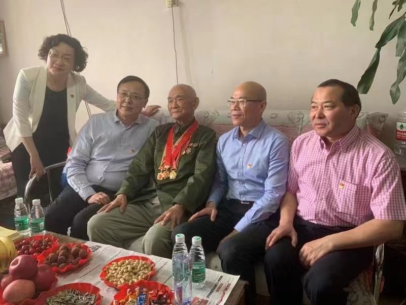 6月18日上午,劉軍才、張萬順、郭建全、曹文素一行前往73年黨齡的趙金生老先生家中慰問。1948年,趙老在東北民主聯(lián)軍六隊(duì)警衛(wèi)營行軍舟戰(zhàn)斗中立大功一次;1949年,在四野43軍司令部四連南下行軍中立功一次;建國后,遠(yuǎn)赴朝鮮參加抗美援朝戰(zhàn)爭(zhēng)。劉軍才一行仔細(xì)觀摩趙老獲得的多枚紀(jì)念章,對(duì)他為黨的解放事業(yè)和新中國建設(shè)所做的貢獻(xiàn)表示感謝。