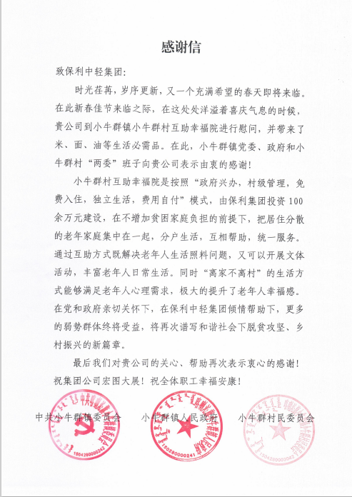 近日,為充分體現(xiàn)黨和國家以及央企對定點(diǎn)幫扶地區(qū)的人文關(guān)懷,保利中輕在內(nèi)蒙古喀喇沁旗開展“振興喀喇沁·關(guān)心促和諧”春節(jié)慰問活動(dòng)。