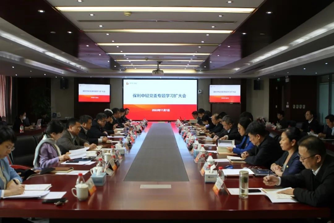在全面學(xué)習(xí)貫徹黨的二十大精神之際,全面啟動部署明年全面預(yù)算工作之時,保利中輕黨委按照保利集團黨委要求原原本本學(xué)習(xí)的同時,11月1日下午組織召開黨委專題學(xué)習(xí)擴大會,緊緊圍繞“深入學(xué)習(xí)貫徹黨的二十大精神,落實‘八維精益’理念,推進高質(zhì)量發(fā)展”主題,結(jié)合企業(yè)實際進行集中學(xué)習(xí)研討。保利中輕黨委書記、董事長安勝杰主持會議并總結(jié)講話。保利中輕領(lǐng)導(dǎo)班子成員、總經(jīng)理助理、總部各部門負(fù)責(zé)人,二級子公司黨政主要負(fù)責(zé)人分別以現(xiàn)場和視頻形式參會。