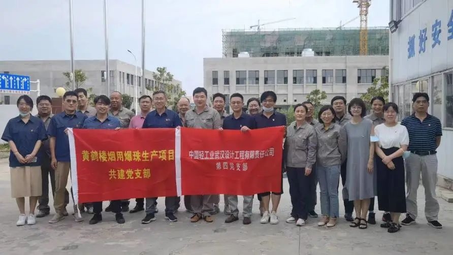 黃鶴樓煙用爆珠生產(chǎn)項目EPC工程是公司深耕開拓煙草行業(yè)獨立承接的首個煙草總包項目,同時也是湖北中煙集團所屬黃鶴樓科技園集團的重要戰(zhàn)略項目。為把項目建成優(yōu)質(zhì)標桿工程,2022年3月,公司作為聯(lián)合體牽頭方,與建設(shè)單位、聯(lián)合體施工單位多方聯(lián)合成立共建黨支部。