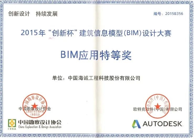 2012年,中國海誠中標(biāo)當(dāng)時(shí)國內(nèi)最大的主題樂園項(xiàng)目,承擔(dān)了超過園區(qū)40%面積的設(shè)計(jì)任務(wù),設(shè)計(jì)團(tuán)隊(duì)大膽創(chuàng)新,改變常規(guī)的設(shè)計(jì)經(jīng)驗(yàn)和工作習(xí)慣,采用三維圖形進(jìn)行仿真模擬,利用BIM技術(shù)防止各個(gè)專業(yè)間因?yàn)?ldquo;打架”而造成的設(shè)計(jì)變更,有效節(jié)約了工程造價(jià) 。憑借BIM在該項(xiàng)目中的出色應(yīng)用,獲得中國2015“創(chuàng)新杯”建筑信息模型(BIM)應(yīng)用設(shè)計(jì)大賽特等獎(jiǎng)、世界主題娛樂協(xié)會(huì)(TEA)頒發(fā)的“杰出成就獎(jiǎng)—景點(diǎn)”獎(jiǎng)杯。