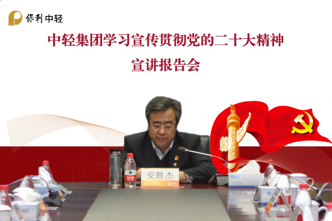 學(xué)習(xí)宣傳貫徹黨的二十大精神是保利中輕當(dāng)前和今后一個(gè)時(shí)期的首要政治任務(wù),為深入推動(dòng)黨的二十大精神在保利中輕直達(dá)基層、直通一線,12月28日下午,保利中輕黨委舉辦學(xué)習(xí)宣傳貫徹黨的二十大精神宣講報(bào)告會(huì)。保利中輕黨委書記、董事長安勝杰以《深入學(xué)習(xí)宣傳貫徹黨的二十大精神 加快建設(shè)世界一流科技企業(yè)》為題為全體黨員干部員工進(jìn)行宣講暨學(xué)習(xí)黨的二十大精神專題黨課。會(huì)議由保利中輕副總經(jīng)理、總會(huì)計(jì)師段趙清主持。