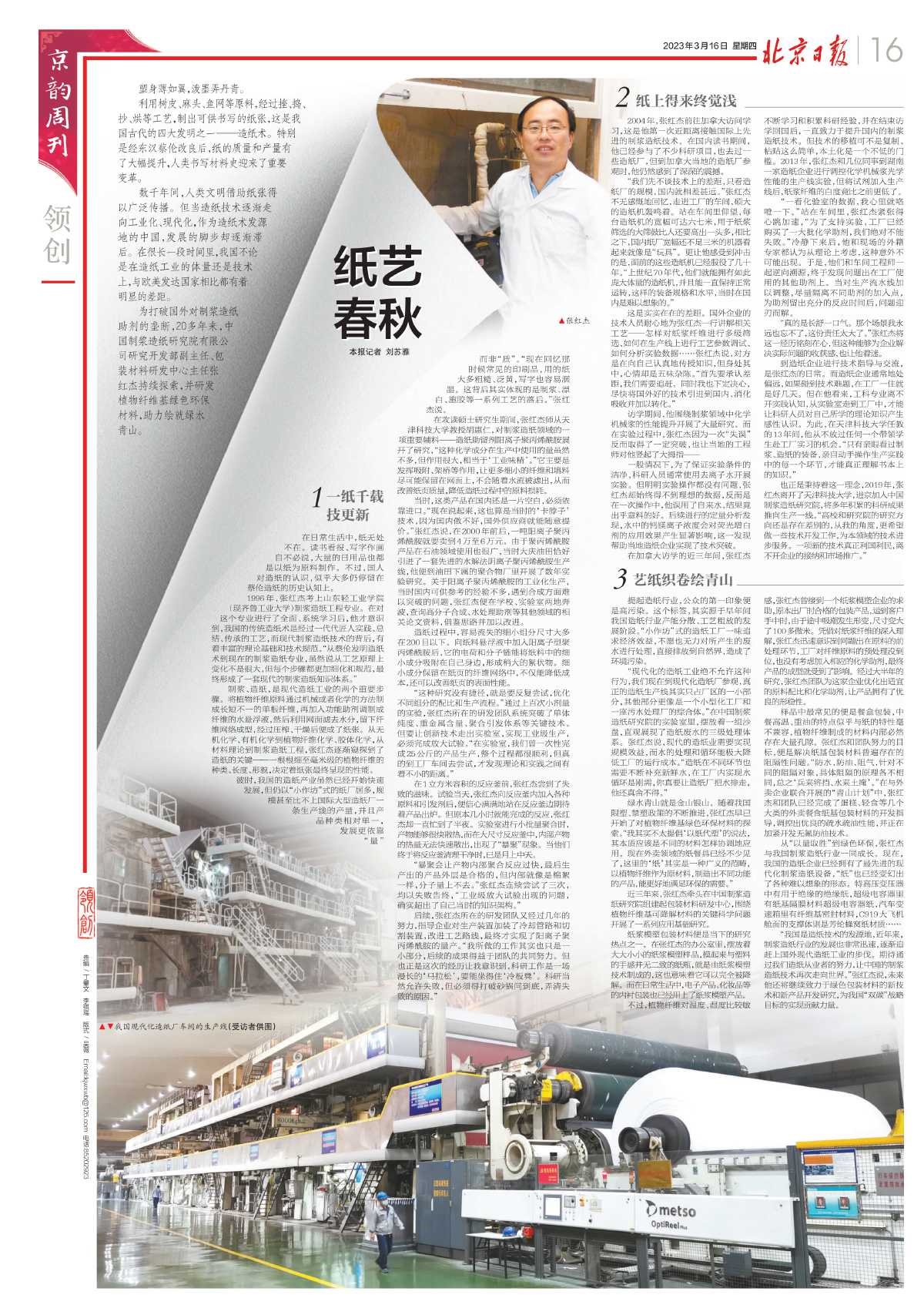 2023年3月16日,《北京日報》“京韻周刊·領創(chuàng)”專欄以《紙藝春秋》為題,刊發(fā)保利中輕所屬中國制漿造紙研究院研究開發(fā)部副主任、包裝研發(fā)中心主任張紅杰及其團隊,為打破國外對制漿造紙助劑的壟斷,持續(xù)研發(fā)植物纖維基綠色環(huán)保材料,助力繪就綠水青山的故事。與大家分享——