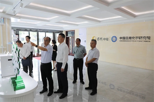 期間,張浩詳細了解中國日用化學研究院生產(chǎn)經(jīng)營、科技創(chuàng)新、行業(yè)市場、標準化工作、改革發(fā)展、安全管理等方面情況,實地參觀院史館、表面活性劑國家工程研究中心、標準化中心、應用技術創(chuàng)新中心。張浩對中國日用化學研究院的歷史積淀、行業(yè)貢獻以及在科技研發(fā)和成果產(chǎn)業(yè)化等方面取得的成績和對國家作出的貢獻給予充分肯定。