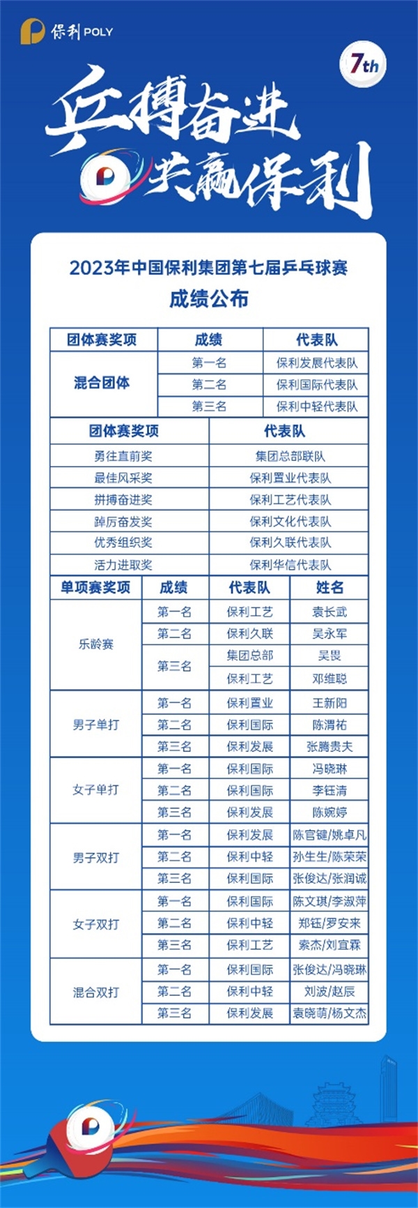11月20日至21日,保利集團第七屆乒乓球比賽在江西南昌雷神競技場隆重舉行。保利中輕代表隊在本次比賽中奮勇拼搏載譽而歸。