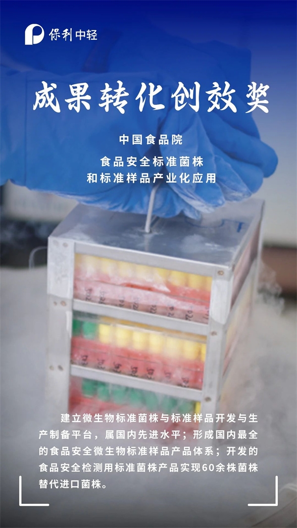 中國(guó)食品院所屬中國(guó)工業(yè)微生物菌種保藏管理中心(CICC)開發(fā)的“食品安全標(biāo)準(zhǔn)菌株和標(biāo)準(zhǔn)樣品產(chǎn)業(yè)化應(yīng)用“項(xiàng)目,通過(guò)整合微生物鑒定、遺傳學(xué)研究、保護(hù)劑優(yōu)化等關(guān)鍵技術(shù),建立微生物標(biāo)準(zhǔn)菌株與標(biāo)準(zhǔn)樣品開發(fā)與生產(chǎn)制備平臺(tái),年產(chǎn)能達(dá)8萬(wàn)支,屬國(guó)內(nèi)先進(jìn)水平;形成國(guó)內(nèi)最全的食品安全微生物標(biāo)準(zhǔn)樣品產(chǎn)品體系,開發(fā)的食品安全檢測(cè)用標(biāo)準(zhǔn)菌株產(chǎn)品100余株,實(shí)現(xiàn)60余株CICC菌株替代進(jìn)口菌株,23株CICC編號(hào)菌株獲得國(guó)際互認(rèn),獲批ISO 17034認(rèn)可體系下有證標(biāo)準(zhǔn)樣品12種,為提升我國(guó)食品安全水平提供有力支撐。