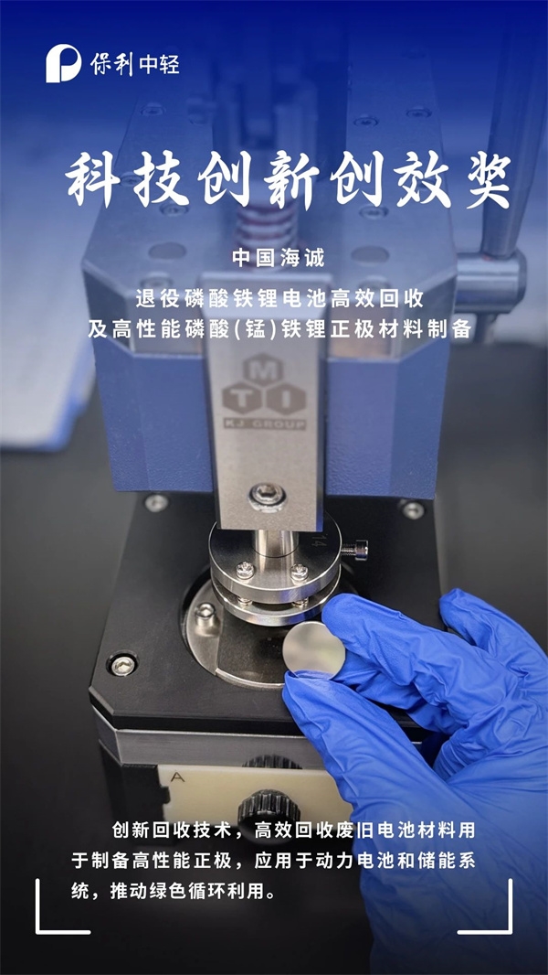近日,保利集團(tuán)第一屆“青創(chuàng)杯”創(chuàng)新創(chuàng)效大賽結(jié)果公布。中國(guó)食品發(fā)酵工業(yè)研究院(簡(jiǎn)稱“中國(guó)食品院”)開發(fā)的“食品安全標(biāo)準(zhǔn)菌株和標(biāo)準(zhǔn)樣品產(chǎn)業(yè)化應(yīng)用”項(xiàng)目獲成果轉(zhuǎn)化創(chuàng)效獎(jiǎng),中國(guó)海誠(chéng)開發(fā)的“退役磷酸鐵鋰電池高效回收及高性能磷酸(錳)鐵鋰正極材料制備”項(xiàng)目獲科技創(chuàng)新創(chuàng)效獎(jiǎng)。此次獲獎(jiǎng)再次彰顯保利中輕在科技創(chuàng)新工作方面的顯著成效??靵?lái)圍觀,一起為他們打call!