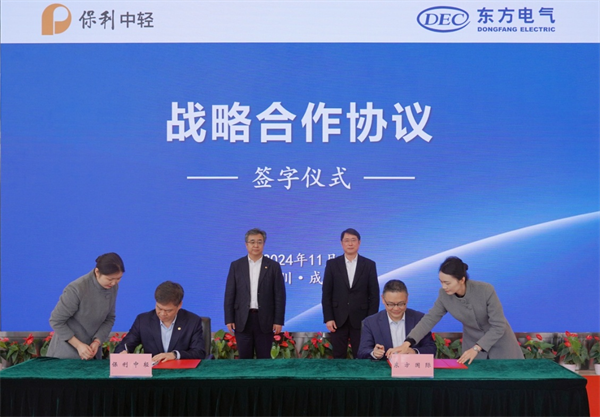 11月19日,保利中輕與東方電氣集團(tuán)國(guó)際合作有限公司(簡(jiǎn)稱(chēng)“東方國(guó)際”)在蓉簽署戰(zhàn)略合作協(xié)議。保利集團(tuán)總經(jīng)理助理,保利中輕黨委書(shū)記、董事長(zhǎng)安勝杰;東方電氣股份有限公司副總裁,東方國(guó)際黨委書(shū)記、董事長(zhǎng)李建華出席儀式見(jiàn)證簽約。