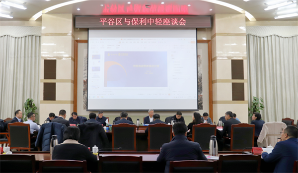 12月2日,保利集團(tuán)總經(jīng)理助理,保利中輕黨委書記、董事長(zhǎng)安勝杰一行與北京市平谷區(qū)委書記唐海龍,區(qū)委副書記、區(qū)長(zhǎng)狄濤等座談交流。保利中輕副總經(jīng)理,中國(guó)海誠黨委書記、董事長(zhǎng)趙國(guó)昂;保利中輕副總經(jīng)理張曦,中國(guó)海誠、中輕長(zhǎng)泰相關(guān)負(fù)責(zé)人,平谷區(qū)政府黨組成員彭石,區(qū)政府相關(guān)部門負(fù)責(zé)人參加座談。