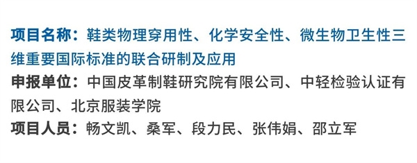 中國皮革制鞋院聯(lián)合申報的“鞋類物理穿用性、化學安全性、微生物衛(wèi)生性三維重要國際標準的聯(lián)合研制及應用”項目,主導制定的國際標準ISO19574、ISO20535和ISO19577,打破多年來歐盟成員國技術壟斷,實現(xiàn)我國在鞋類微生物、物理和化學領域國際標準的突破,填補物理和化學檢測方法標準的國際空白。