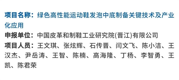 中國皮革制鞋院晉江公司申報的“綠色高性能運動鞋發(fā)泡中底制備關鍵技術及產業(yè)化應用”項目,以典型鞋用EVA和TPU彈性體為基體,開展了綠色高性能運動鞋發(fā)泡中底制備關鍵技術及產業(yè)化應用相關工作,揭示了相關材料改性調控機制、內在發(fā)泡行為及作用機理。項目成果填補了制鞋行業(yè)在發(fā)泡EVA中底和生物質改性TPU中底領域空白。