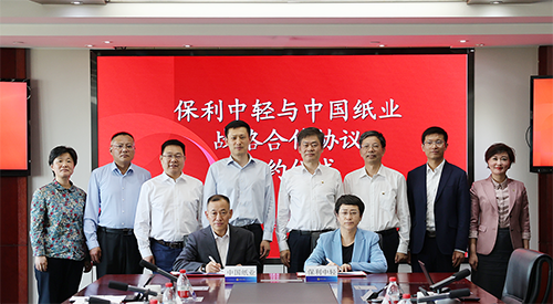 4月23日,中國輕工集團有限公司(以下簡稱保利中輕)與中國紙業(yè)投資有限公司(以下簡稱中國紙業(yè))在保利中輕總部就進一步深化合作座談交流并簽署戰(zhàn)略合作協(xié)議。保利中輕黨委副書記、總經(jīng)理趙國昂;保利中輕副總經(jīng)理,中國造紙院黨委書記、董事長孫波;中國紙業(yè)黨委書記、董事長鐘天崎,副總經(jīng)理曹衛(wèi)良、謝先龍,總經(jīng)理助理、總工程師單立偉出席簽約儀式。