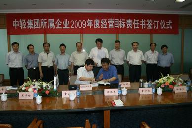7月16日,中國(guó)輕工集團(tuán)公司所屬二級(jí)企業(yè)2009年經(jīng)營(yíng)目標(biāo)責(zé)任書簽訂儀式在集團(tuán)總部舉行。集團(tuán)公司領(lǐng)導(dǎo)、集團(tuán)公司部門負(fù)責(zé)人、二級(jí)企業(yè)負(fù)責(zé)人出席了儀式。儀式由集團(tuán)公司董事長(zhǎng)陳學(xué)忠主持,陳鄂生總經(jīng)理代表集團(tuán)公司與所屬10家二級(jí)企業(yè)負(fù)責(zé)人簽訂了2009年度經(jīng)營(yíng)目標(biāo)責(zé)任書。陳學(xué)忠董事長(zhǎng)、陳鄂生總經(jīng)理先后在簽字儀式上講話,要求各二級(jí)企業(yè)要認(rèn)真分析金融危機(jī)對(duì)企業(yè)帶來(lái)的影響,找準(zhǔn)問(wèn)題,制定切實(shí)可行的辦法,力保全年任務(wù)的完成,為重組后新集團(tuán)的快速發(fā)展打好基礎(chǔ)。
