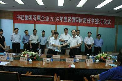 此次簽訂的目標(biāo)責(zé)任書是對(duì)年初原中輕集團(tuán)、中國(guó)海誠(chéng)、中輕對(duì)外三家企業(yè)重組前分別上報(bào)國(guó)資委預(yù)算指標(biāo)的進(jìn)一步分解、落實(shí)和確認(rèn)。