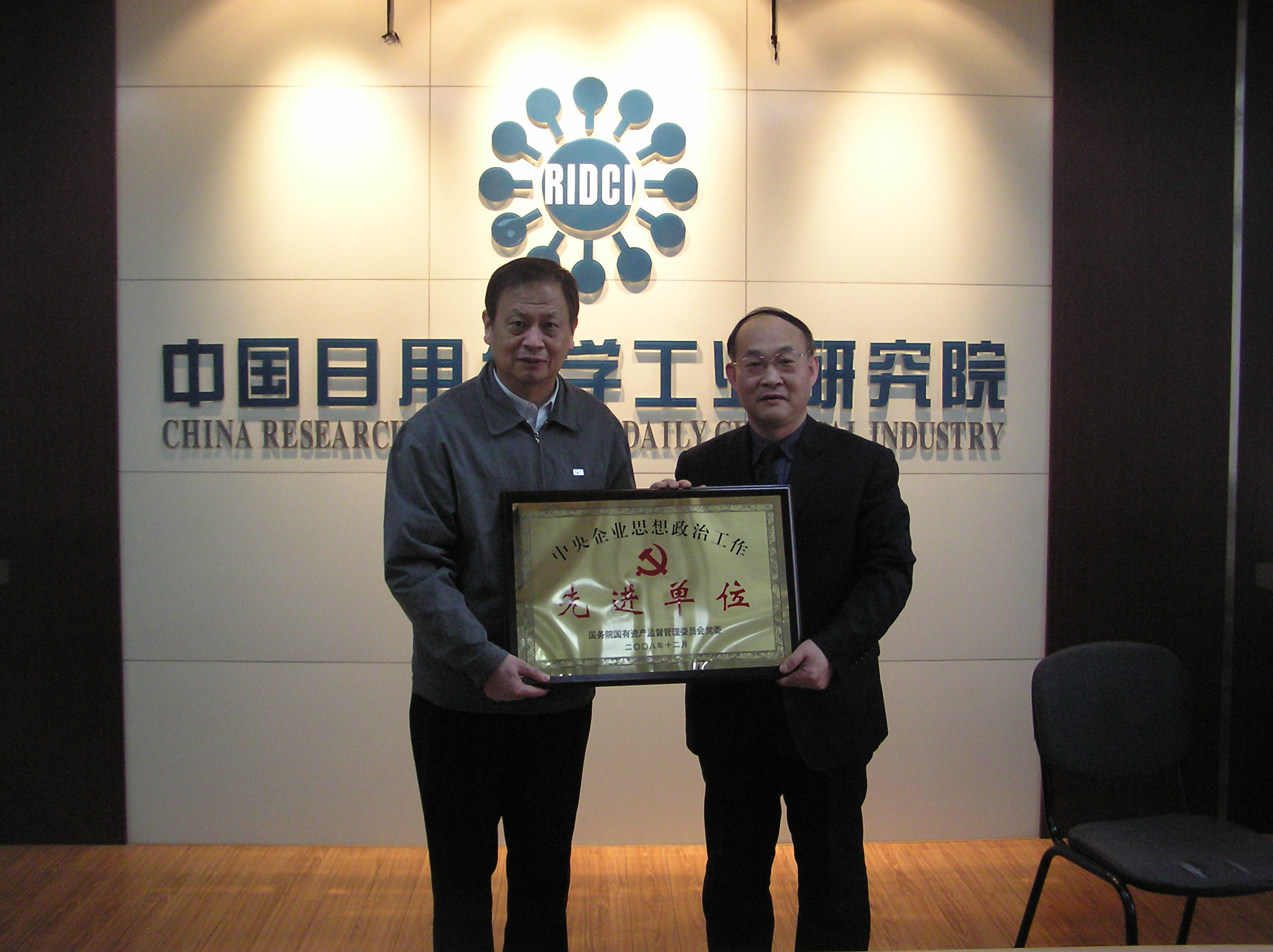 2009年,中國日用化學(xué)工業(yè)研究院榮獲國務(wù)院國資委委表彰的中央企業(yè)思想政治工作先進(jìn)單位。2010年2月24日,集團(tuán)公司黨委副書記、紀(jì)委書記梁江東同志到中國日用化學(xué)工業(yè)研究院開展工作,代表集團(tuán)公司黨委給中國日用化學(xué)工業(yè)研究院頒發(fā)了中央企業(yè)思想政治工作先進(jìn)單位獎(jiǎng)牌。