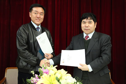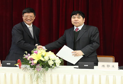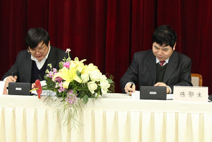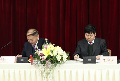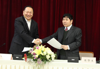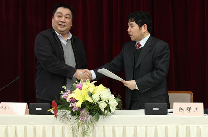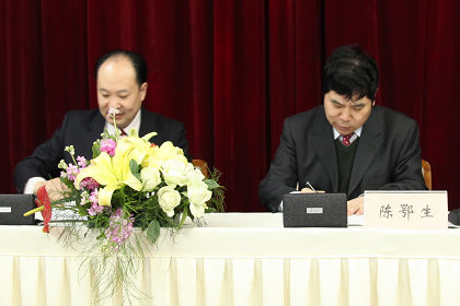 陳鄂生總經(jīng)理與日化院院長(zhǎng)王萬(wàn)緒簽訂經(jīng)營(yíng)目標(biāo)責(zé)任書