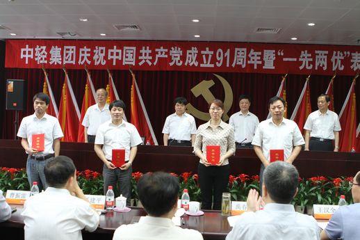 2012年6月29日下午,中輕集團(tuán)慶祝中國共產(chǎn)黨成立91周年暨“一先兩優(yōu)”表彰大會(huì)在集團(tuán)公司新的總部辦公大樓——中輕大廈隆重召開。會(huì)議隆重表彰了集團(tuán)公司先進(jìn)基層黨組織、優(yōu)秀共產(chǎn)黨員、優(yōu)秀黨務(wù)工作者和集團(tuán)公司2009-2011年度創(chuàng)建“四好”領(lǐng)導(dǎo)班子先進(jìn)集體。集團(tuán)公司黨委書記、董事長陳鄂生在會(huì)上作了重要講話。集團(tuán)公司總經(jīng)理俞海星主持會(huì)議。